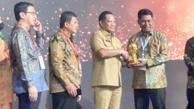 Penghargaan UHC diterima langsung oleh Bupati Halmahera Timur Drs Ubaid Yakub MPA didampingi Kadis Kesehatan Haltim Abdullah Yakub,yang diserahkan oleh Menteri Dalam Negeri RI M Tito Karnavian, di Balai Sudirman, Selasa (14/03/2023).