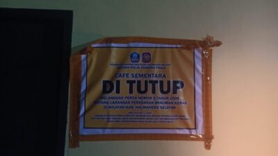 Kabar27 – Satuan Polisi Pamong Praja (Satpol-PP) Kabupaten Halmahera Selatan (Halsel), resmi menutup Caffe Karaoke Bungalow 3 di Desa Tomori, Kecamatan Bacan.