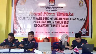Kabar27- Empat Panitia Pemilihan Kecamatan (PPK) di Daerah Pemilihan (Dapil) III Kota Ternate, yakni Pulau Ternate, Ternate Barat, Pulau Hiri dan Pulau Batang Dua, telah selesai melaksanakan pleno rekapitulasi hasil penghitungan perolehan suara pemilihan umum tahun 2024.