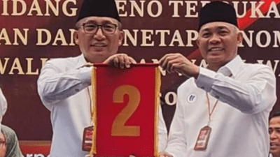 Kabar27 – Rapat pleno terbuka pengundian dan penetapan nomor urut pasangan calon Wali Kota dan Wakil Wali Kota Ternate tahun 2023, Senin (23/9/2024) dipenuhi para pendukung pasangan calon.