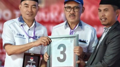 “Angka 3 itu tanda kemenangan, pertama diambil, kedua dibuka dan ketiga dicoblos. Dengan mendapatkan nomor urut 3, kami yakin dan percaya akan menang dan dapat melanjutkan program pembangunan di Halmahera Barat ke arah yang lebih baik,” ungkapnya.