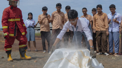 “Pelatihan ini kami rancang agar menyenangkan. Ibaratnya, kami berbagi pengetahuan dengan adik-adik siswa untuk menjadi tokoh animasi di serial Avatar, yang mampu mengendalikan berbagai elemen bumi, khususnya api. Sekaligus kami memberikan pemahaman mengenai elemen kimia yang menjadi unsur api, sehingga kita mampu mengendalikannya,” ujar Hendri Saputro, OHS Supervisor Harita Nickel.